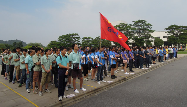 ÉÏͼ£º¼ÓÈëÔ˶¯µÄ¸÷ÆóÒµ¶ÓÔ±ÔÚ¿ªÄ»Ê½ÉÏÕûÆëÅŶÓ