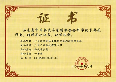 ÈÙ»ñÖйúÎïÁ÷Óë²É¹ºÍŽá»á¿Æ¼¼Ç°½ø½±Ò»µÈ½±£¨ÅÆØÒ£©